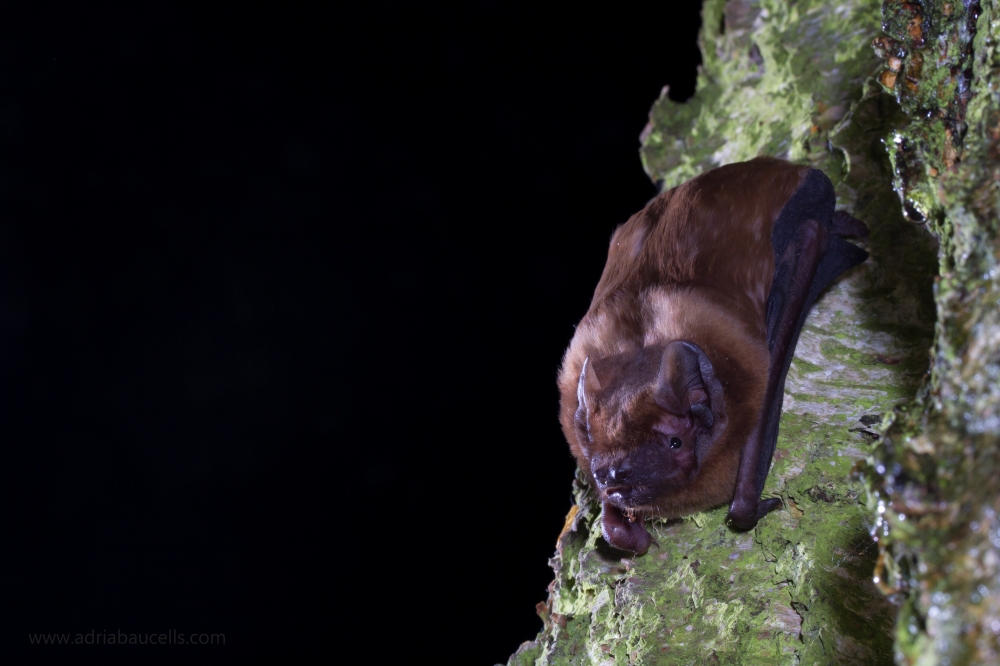 Esta especie presenta dos tipos de ecolocalización diferentes, según la zona de caza. El primer tipo de llamada la utiliza para cazar el bosques de baja altitud y se trata de una llamada bastante modulada con unas frecuencias que van des de los 24 a los 45 kHz. El otro tipo lo utiliza para cazar en zonas abiertas, por encima de árboles, y aunque también es bastante modulado, tiene frecuencias entre 19 y 25 kHz.