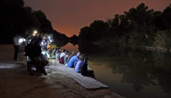 1) Ens situem a la riba i enfoquem la llanterna creuant el curs de l'aigua i arran de la superfície, i durant 10 minuts comptem els ratpenats aquàtics (Myotis daubentonii/Myotis capaccinii) que creuen la llum.